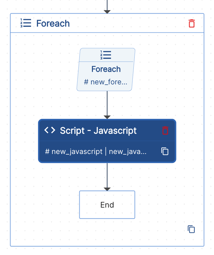 The diagram below shows a FOREACH loop containing a Script step that can access the current iteration's data: