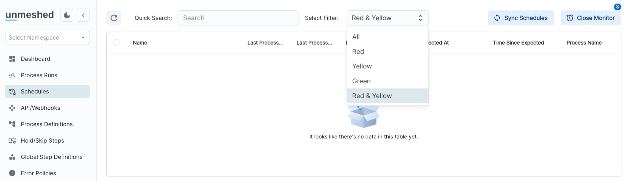 - Click on Monitor Schedules to open the schedule monitoring view.